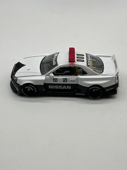 Kaido House (x MiniGT) - Regular Release #120 - White Nissan Skyline GT-R (R34) Kaido Works V2 Aero (Japan Police)
